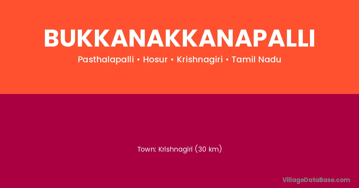 Krishnagiri (30 km) is the nearest town to Bukkanakkanapalli village for major economic activities and is located approximately 30 km away.