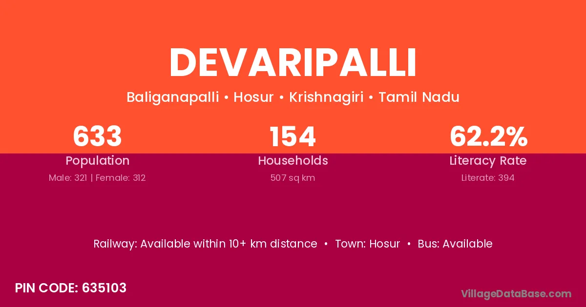 Hosur is the nearest town to Devaripalli village for major economic activities
