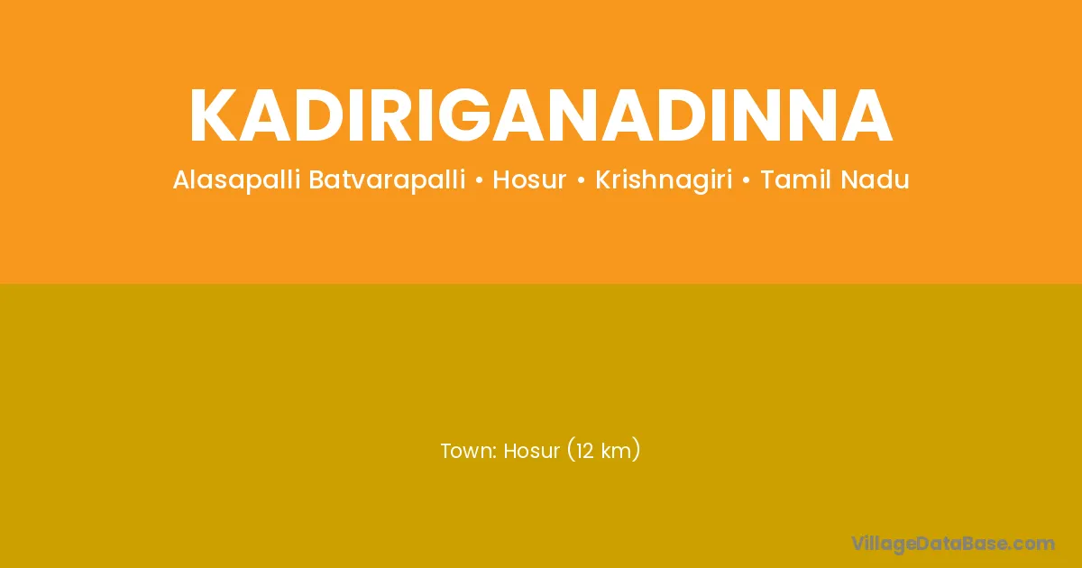 Hosur (12 km) is the nearest town to Kadiriganadinna village for major economic activities and is located approximately 12 km away.