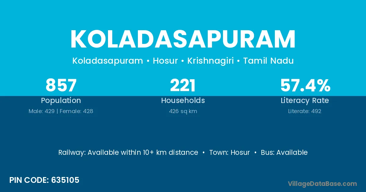 Hosur is the nearest town to Koladasapuram village for major economic activities