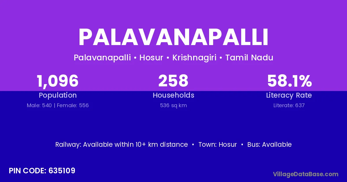 Hosur is the nearest town to Palavanapalli village for major economic activities