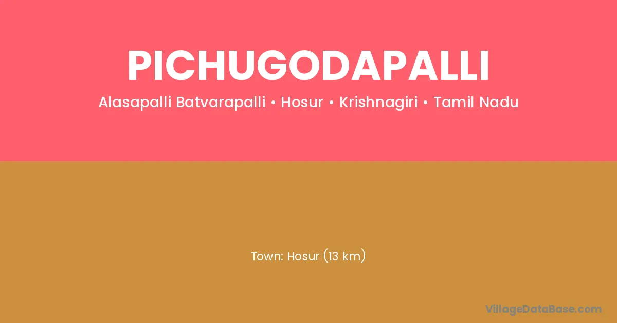 Hosur (13 km) is the nearest town to Pichugodapalli village for major economic activities and is located approximately 13 km away.