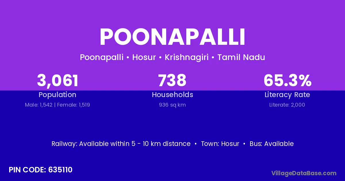 Hosur is the nearest town to Poonapalli village for major economic activities