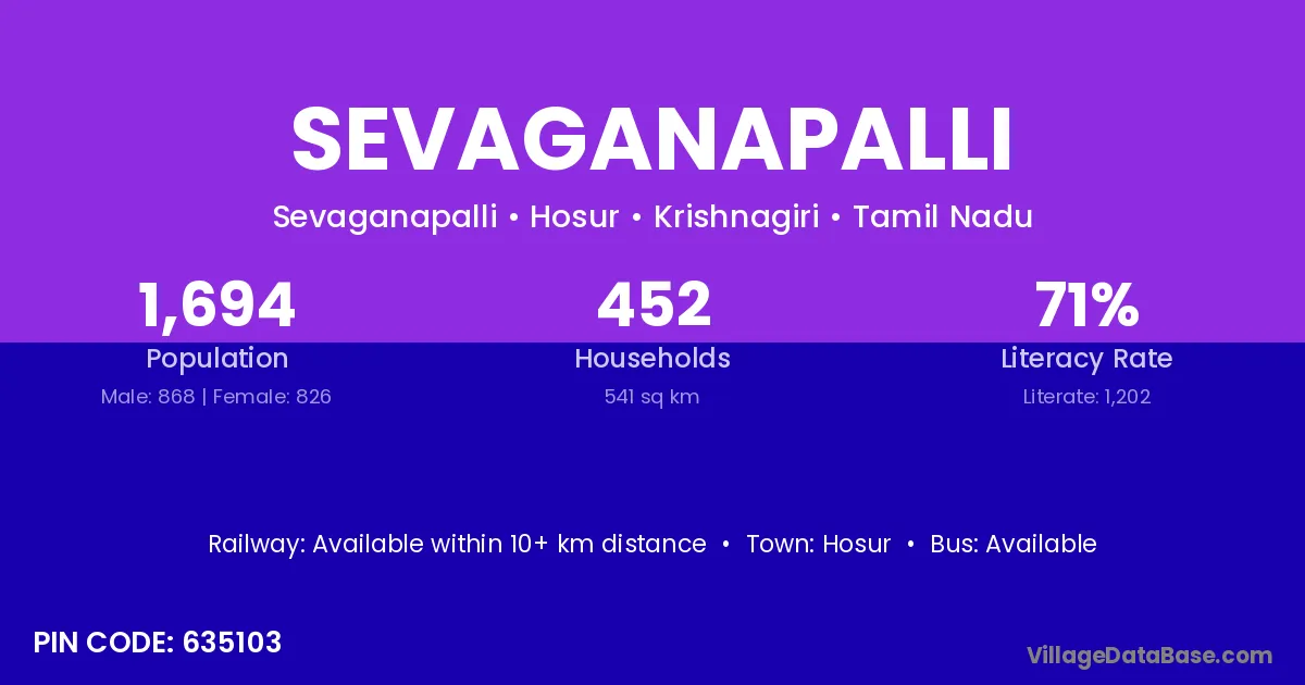 Hosur is the nearest town to Sevaganapalli village for major economic activities