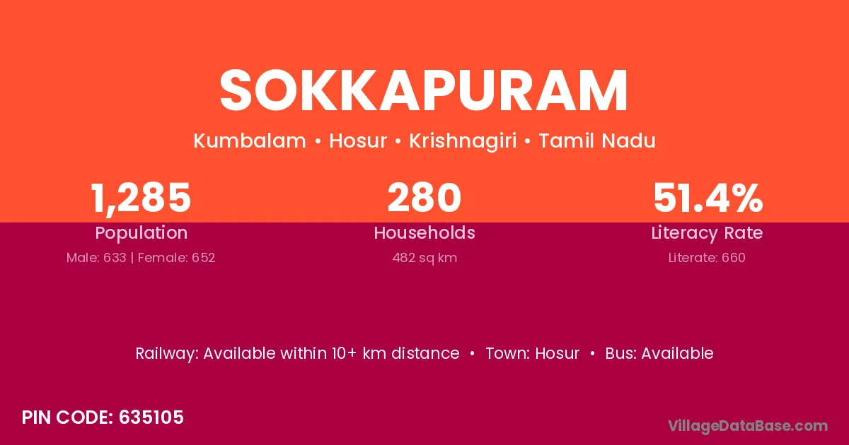 Hosur is the nearest town to Sokkapuram village for major economic activities