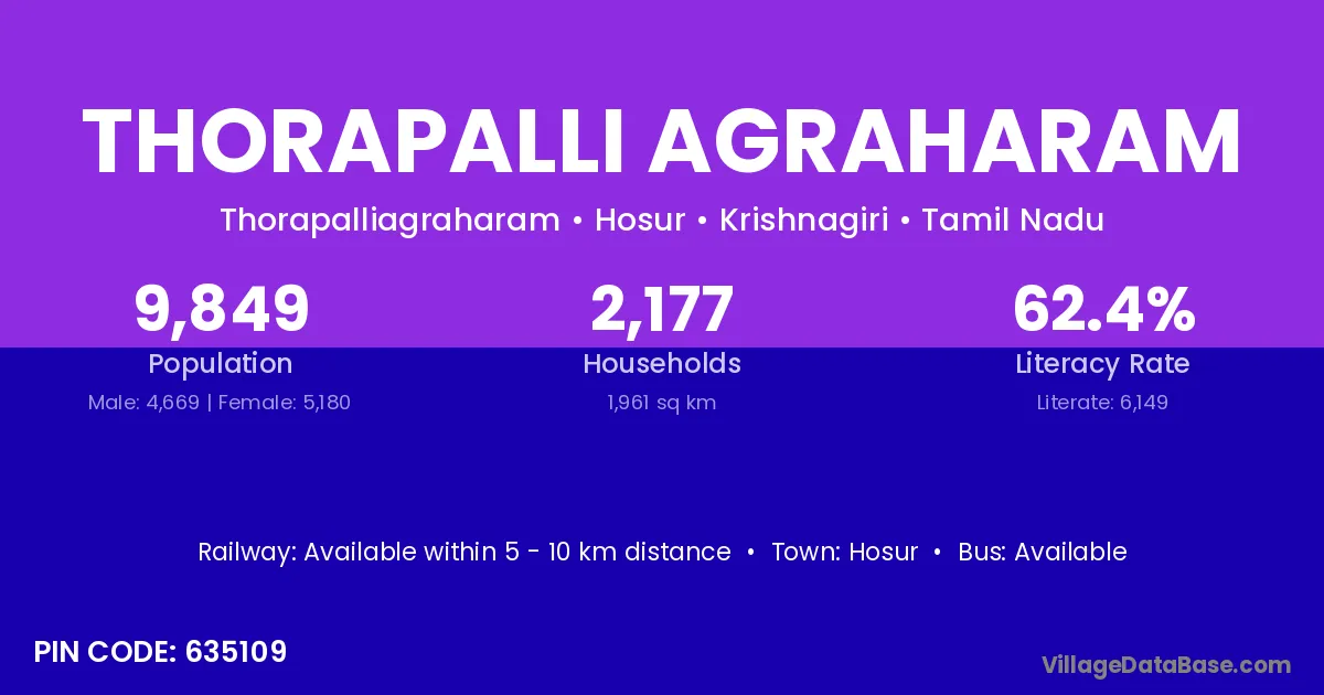 Hosur is the nearest town to Thorapalli Agraharam village for major economic activities
