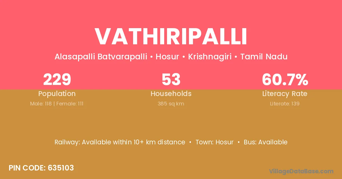 Hosur is the nearest town to Vathiripalli village for major economic activities