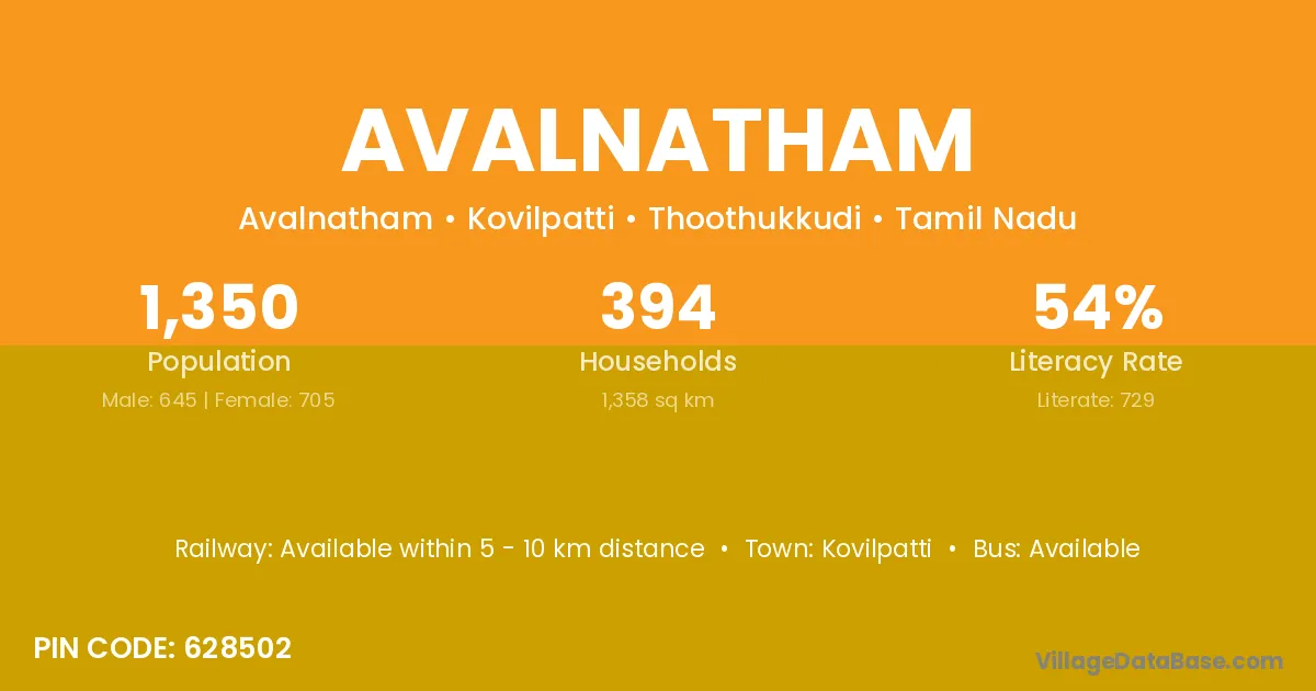 According to Census 2011 information, the village code of Avalnatham village is 635121.