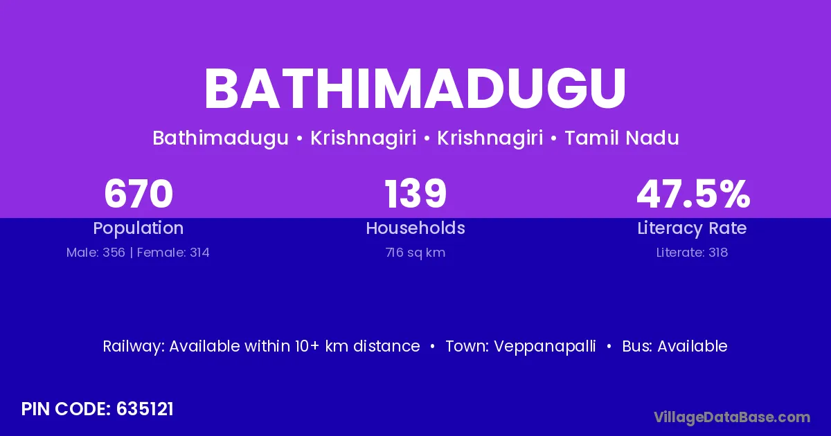 Veppanapalli is the nearest town to Bathimadugu village for major economic activities