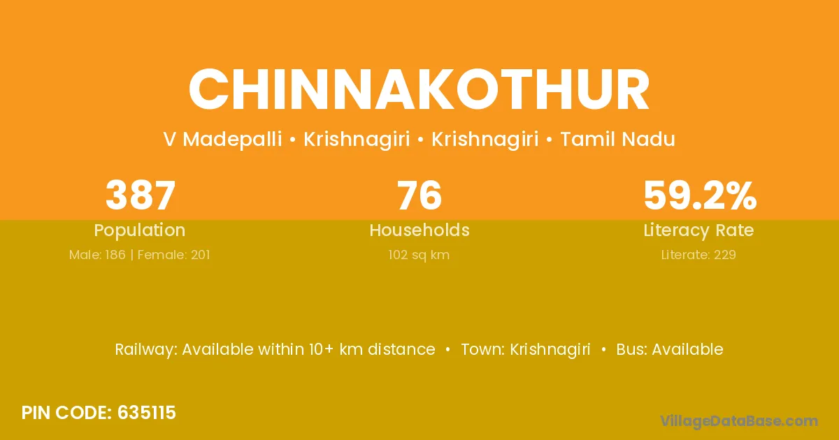 Chinnakothur village has a total population of 387 people, of which 186 are males and 201 are females.
