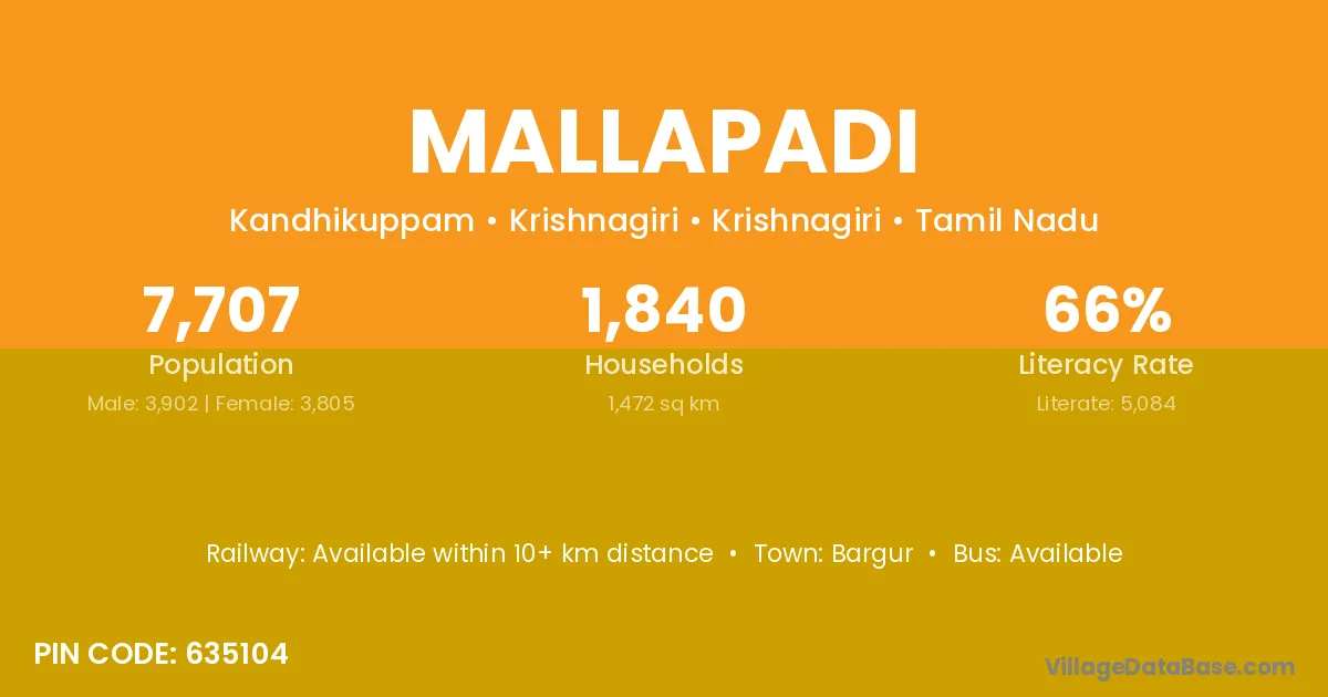 According to Census 2011 information, the village code of Mallapadi village is 635104.