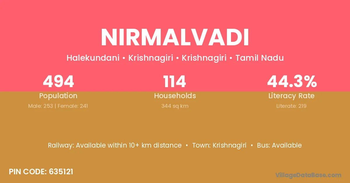 Krishnagiri is the nearest town to Nirmalvadi village for major economic activities