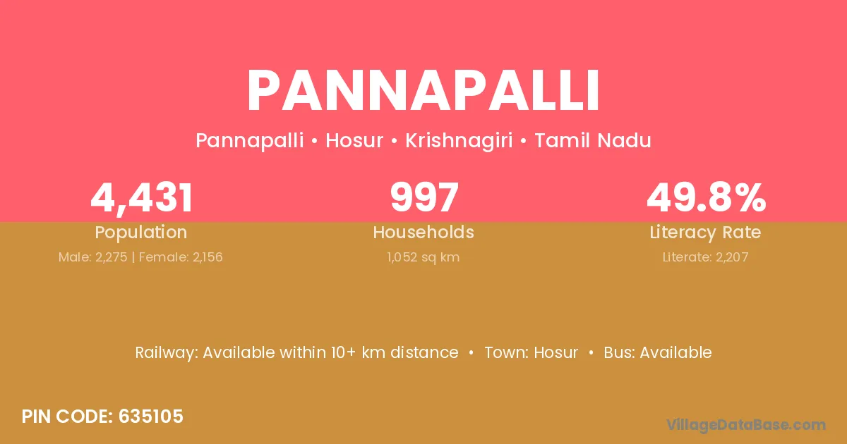 Krishnagiri is the nearest town to Pannapalli village for major economic activities