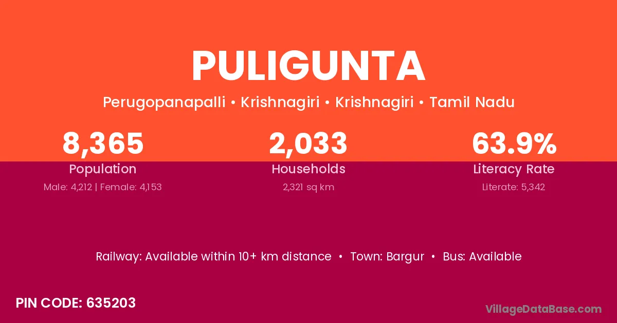 Bargur is the nearest town to Puligunta village for major economic activities