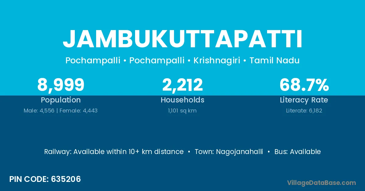 Nagojanahalli is the nearest town to Jambukuttapatti village for major economic activities