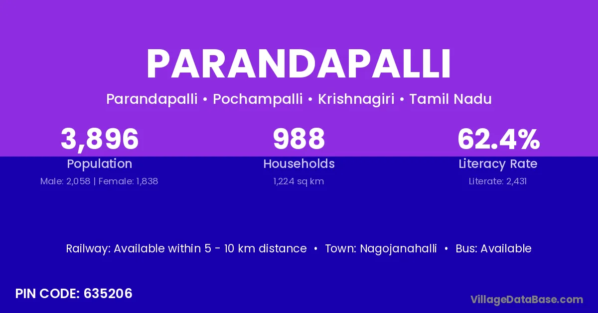 According to Census 2011 information, the village code of Parandapalli village is 635206.
