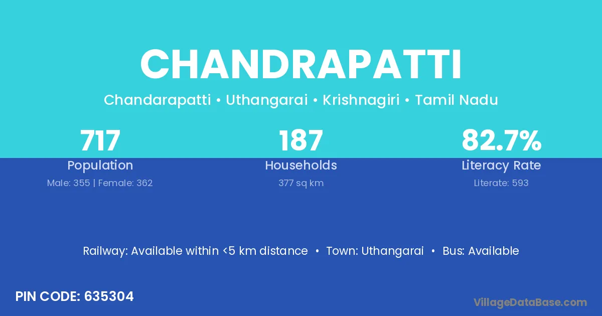 Uthangarai is the nearest town to Chandrapatti village for major economic activities