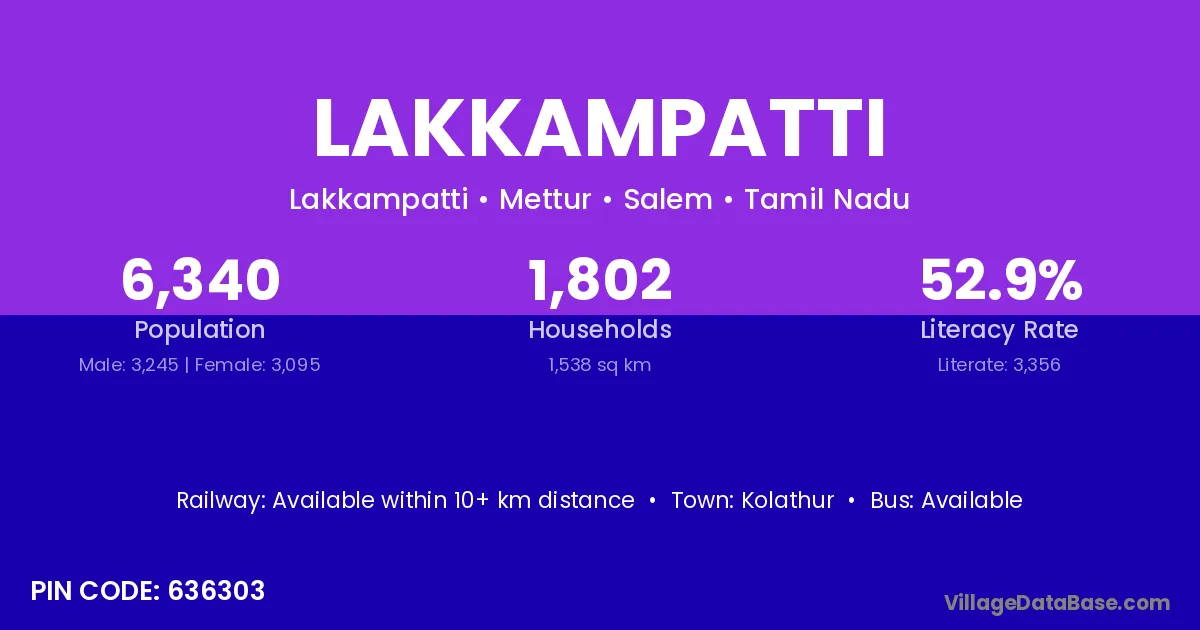 According to Census 2011 information, the village code of Lakkampatti village is 636902.