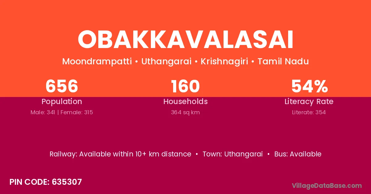 Uthangarai is the nearest town to Obakkavalasai village for major economic activities