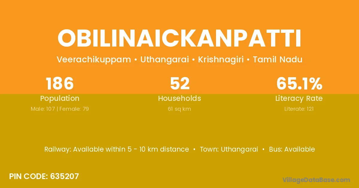 Obilinaickanpatti village has a total population of 186 people, of which 107 are males and 79 are females.