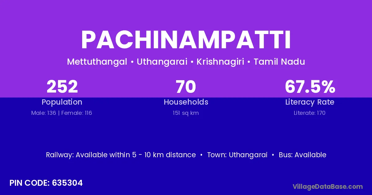 Uthangarai is the nearest town to Pachinampatti village for major economic activities