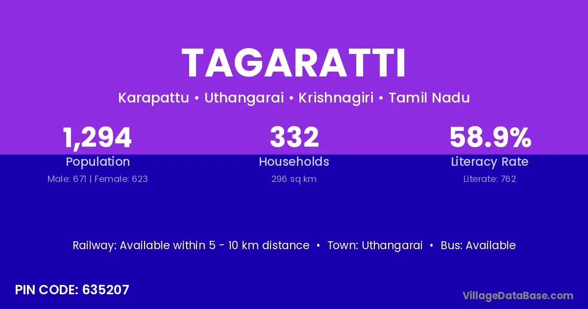 Tagaratti village has a total population of 1,294 people, of which 671 are males and 623 are females.