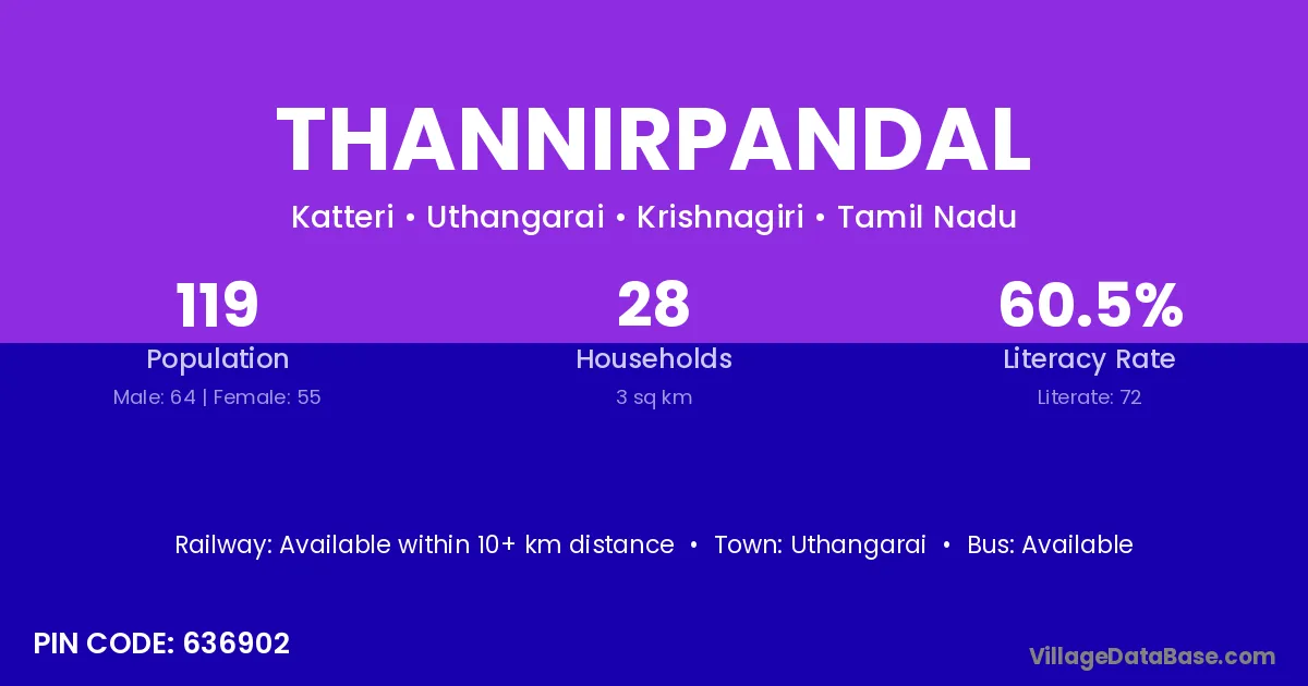 Thannirpandal village has a total population of 119 people, of which 64 are males and 55 are females.