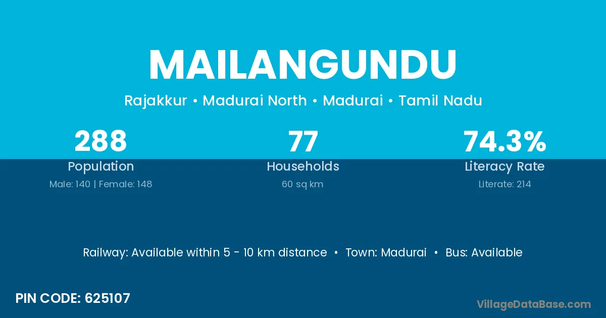 According to Census 2011 information, the village code of Mailangundu village is 625107.