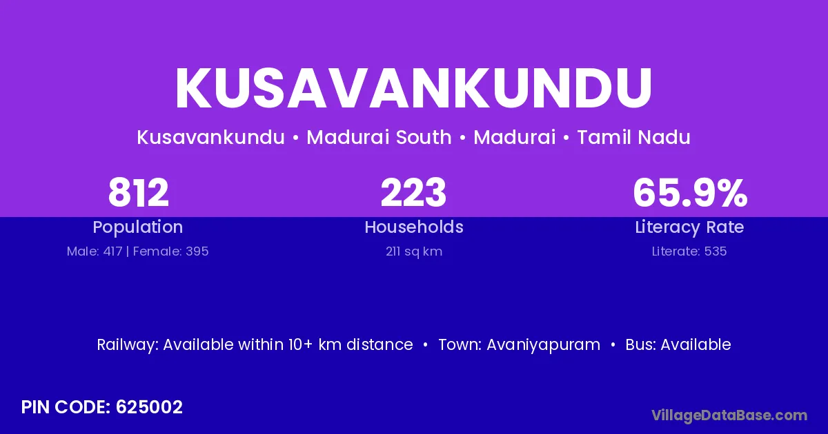 Avaniyapuram is the nearest town to Kusavankundu village for major economic activities