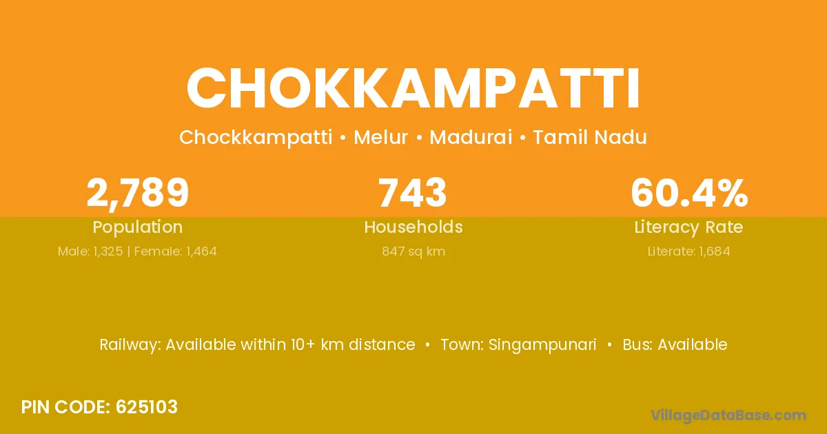 There are approximately 743 households in Chokkampatti village.