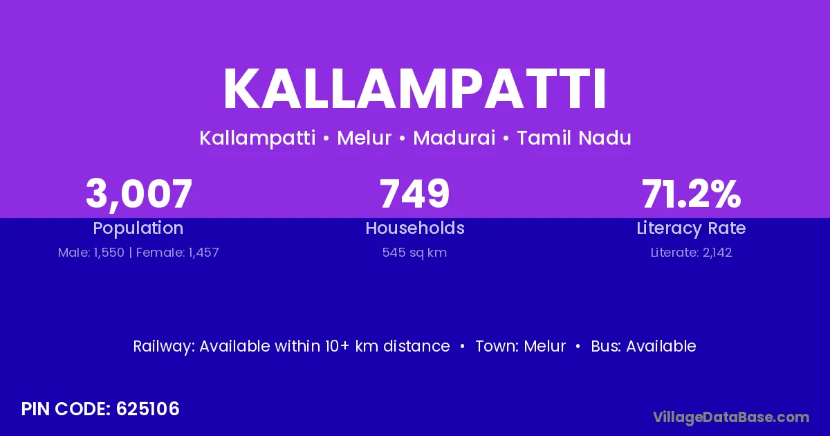 According to Census 2011 information, the village code of Kallampatti village is 625106.