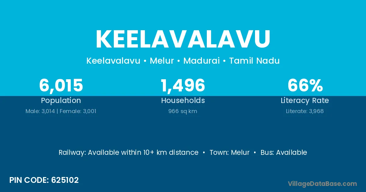 Melur is the nearest town to Keelavalavu village for major economic activities