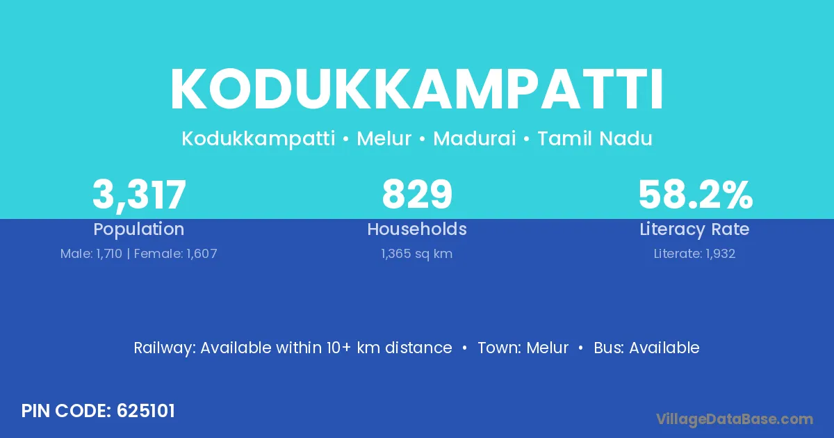 Melur is the nearest town to Kodukkampatti village for major economic activities