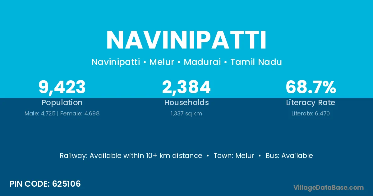 Melur is the nearest town to Navinipatti village for major economic activities