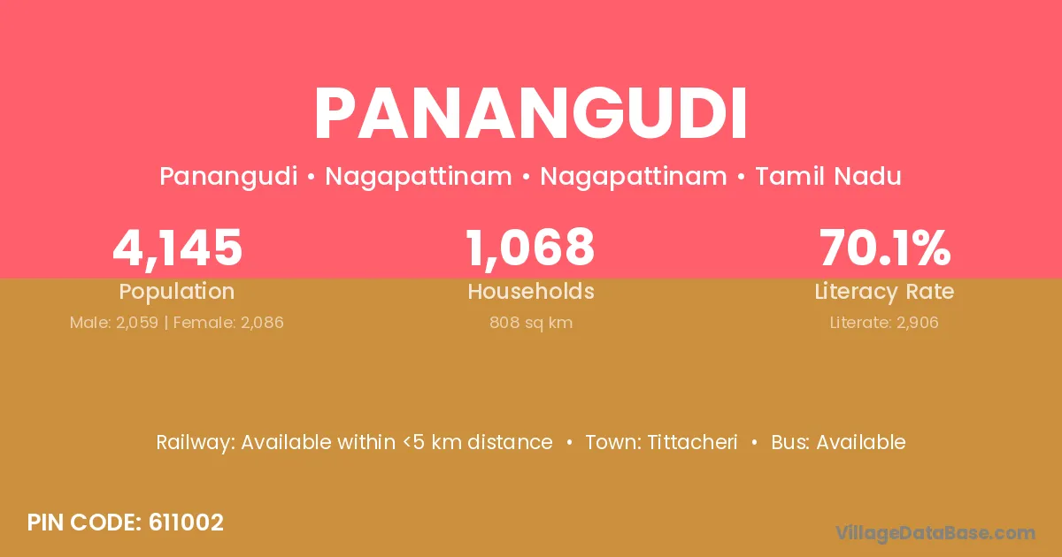 Panangudi village has a total population of 856 people, of which 430 are males and 426 are females.