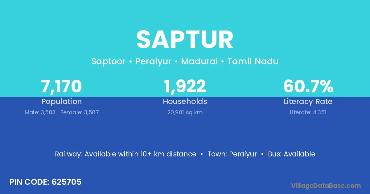 Peraiyur is the nearest town to Saptur village for major economic activities