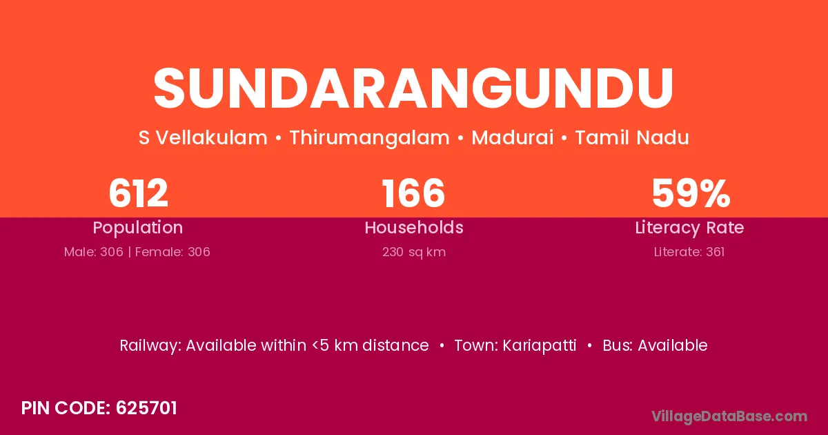 Kariapatti is the nearest town to Sundarangundu village for major economic activities