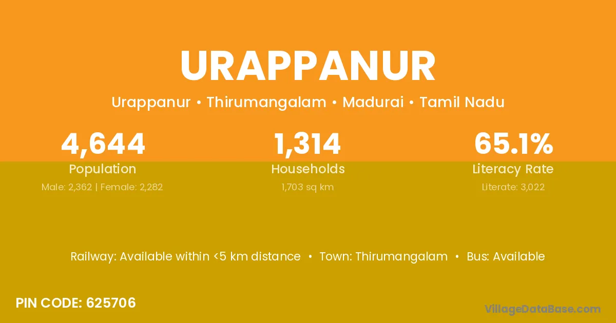Thirumangalam is the nearest town to Urappanur village for major economic activities