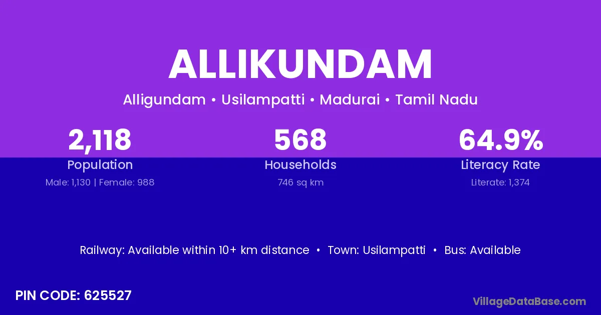 Usilampatti is the nearest town to Allikundam village for major economic activities