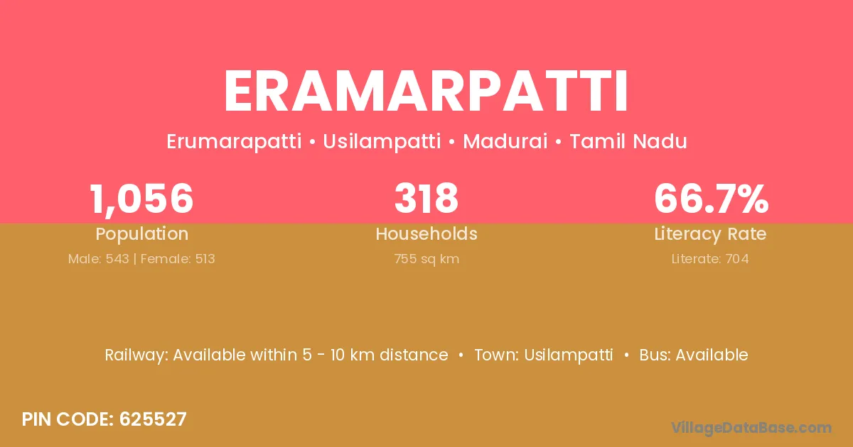 Usilampatti is the nearest town to Eramarpatti village for major economic activities