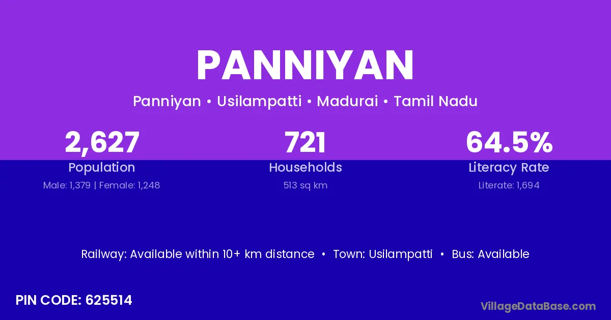 Usilampatti is the nearest town to Panniyan village for major economic activities