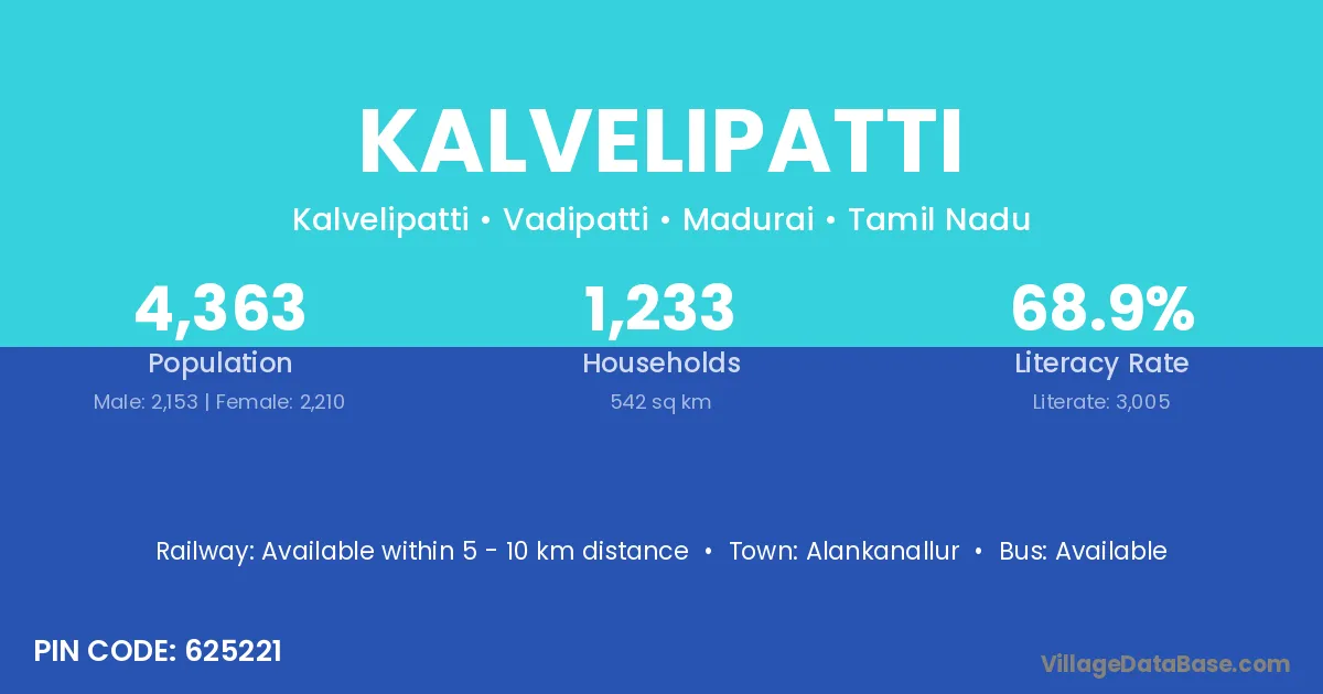 According to Census 2011 information, the village code of Kalvelipatti village is 625221.