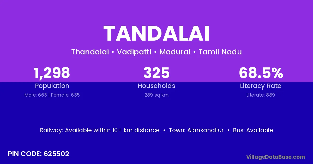 Tandalai village has a total population of 1,298 people, of which 663 are males and 635 are females.