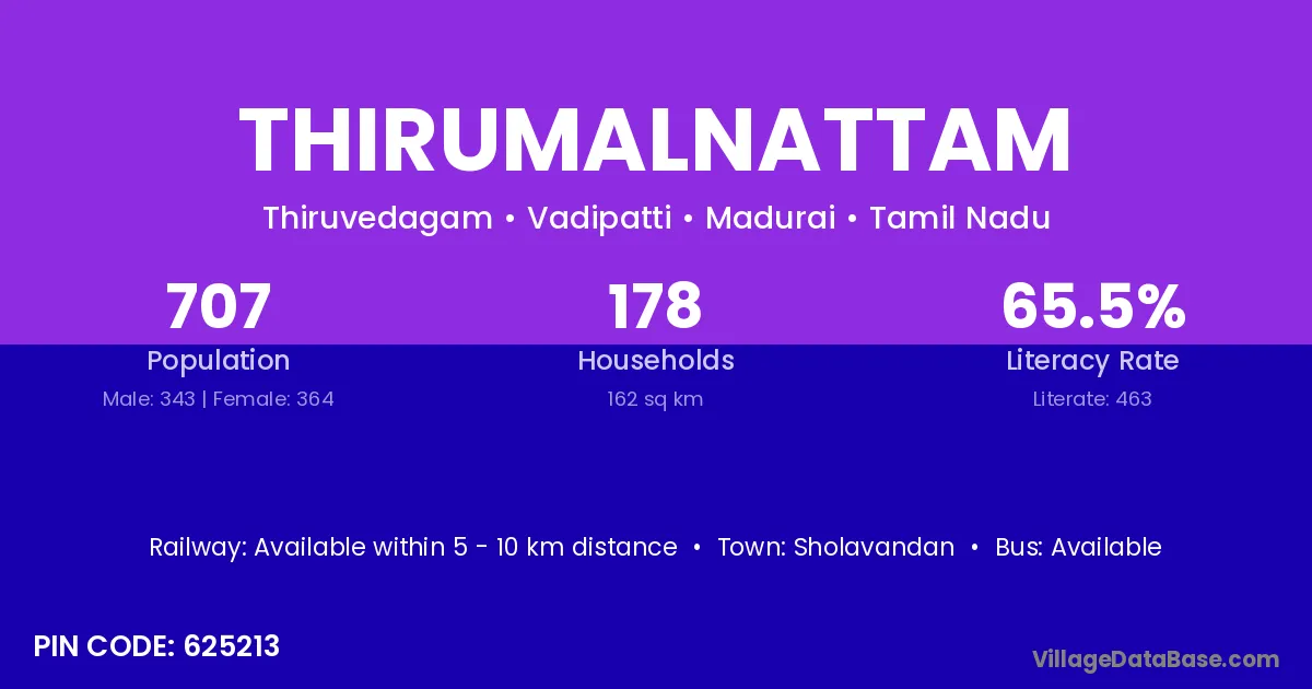 Sholavandan is the nearest town to Thirumalnattam village for major economic activities