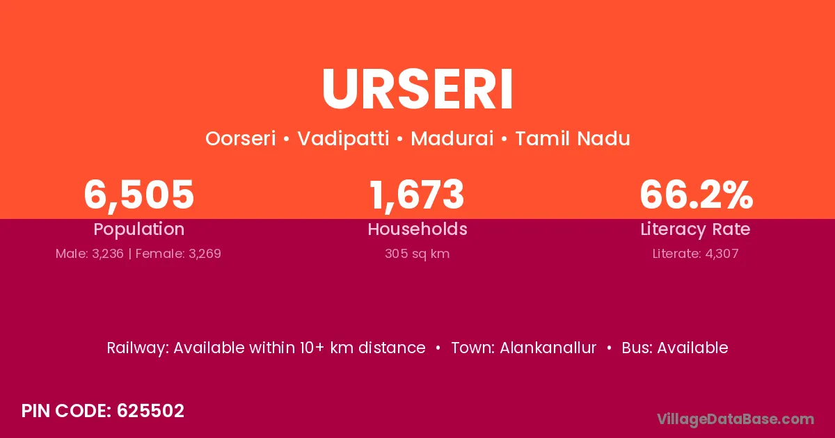Alankanallur is the nearest town to Urseri village for major economic activities