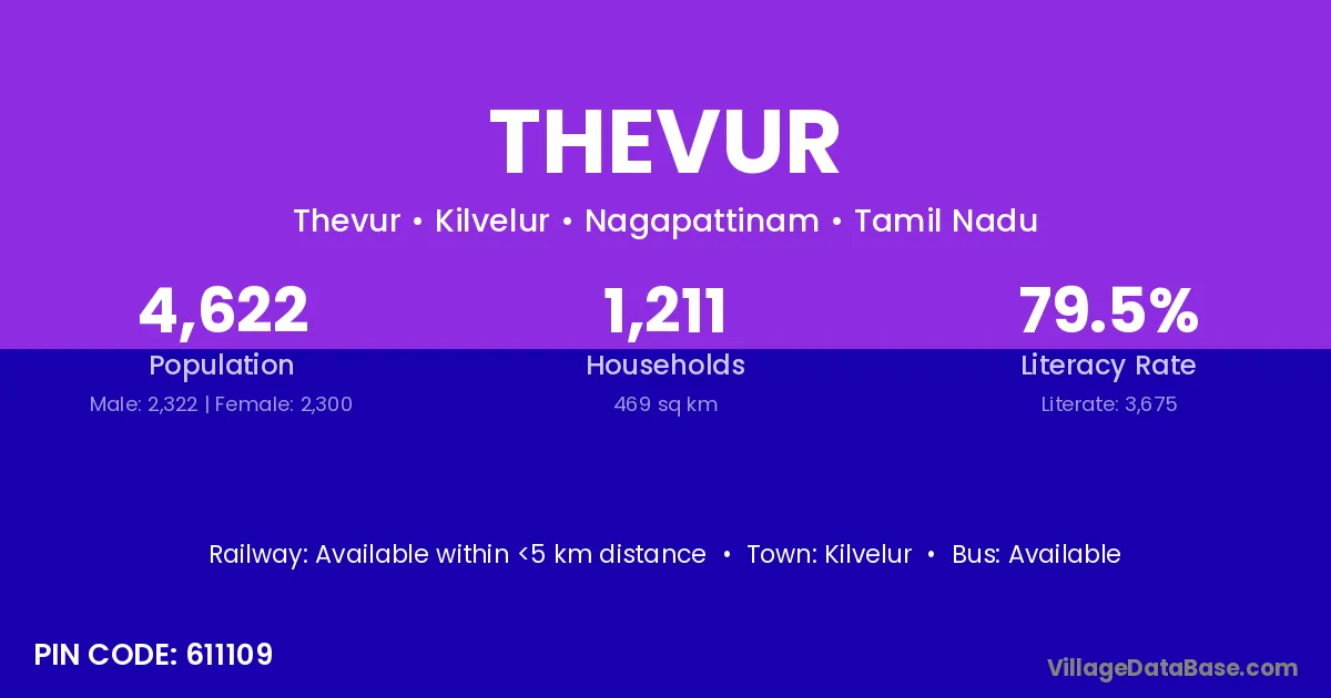 There are approximately 1,211 households in Thevur village.