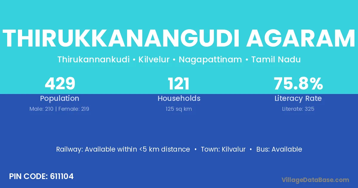 Thirukkanangudi Agaram village has a total population of 429 people, of which 210 are males and 219 are females.