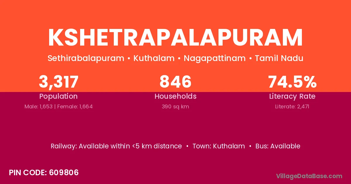 Kuthalam is the nearest town to Kshetrapalapuram village for major economic activities