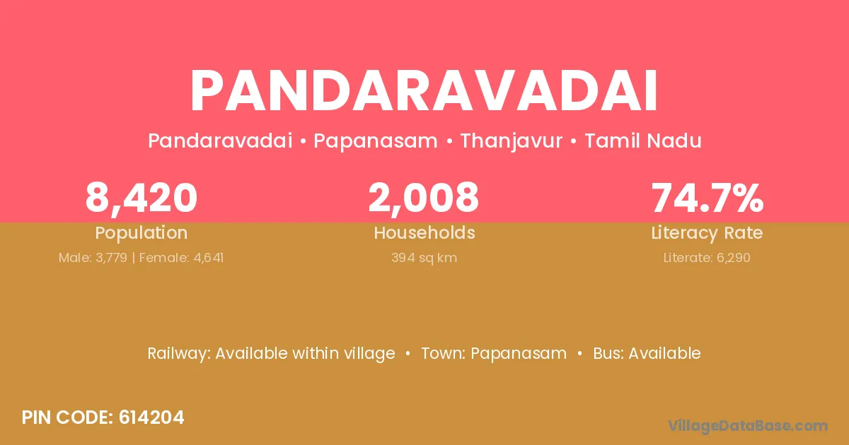 Pandaravadai village has a total population of 1,491 people, of which 723 are males and 768 are females.