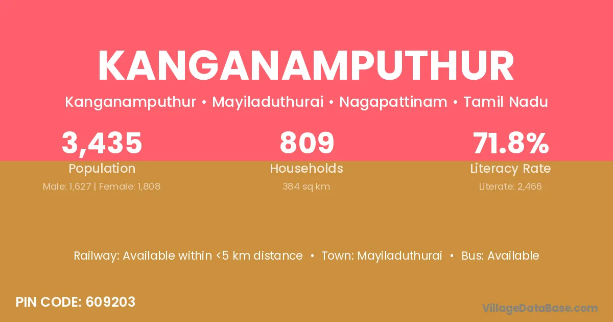 Mayiladuthurai is the nearest town to Kanganamputhur village for major economic activities